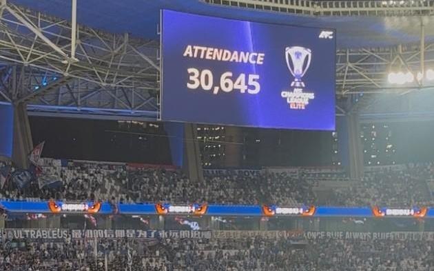 本轮亚冠精英观众人数:成都41463人排第2,申花30645人排第3