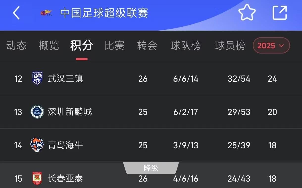 保级大战白热化!剩4轮4队只差3分,亚泰抢下1分,6天后生死战