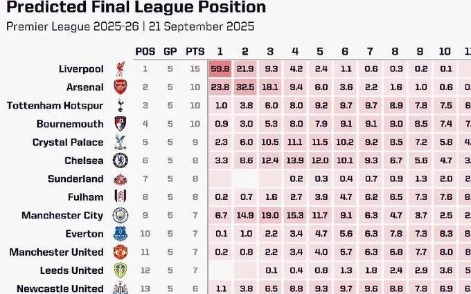 这次真的大结局了外媒更新利物浦英超卫冕概率为59.8%