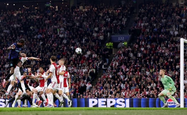 下半场比赛国际米兰带球入场,而且还是同样的套路,恰尔汗奥卢右侧角球开出,小图拉姆禁区内高高跃起,力压防守球员头球破门,帮助蓝黑军团将领先的优势扩大到了2球,牢牢掌握住了获胜的主动权,阿贾克斯自从19年以来首次遭遇单场2次角球丢分的情况。