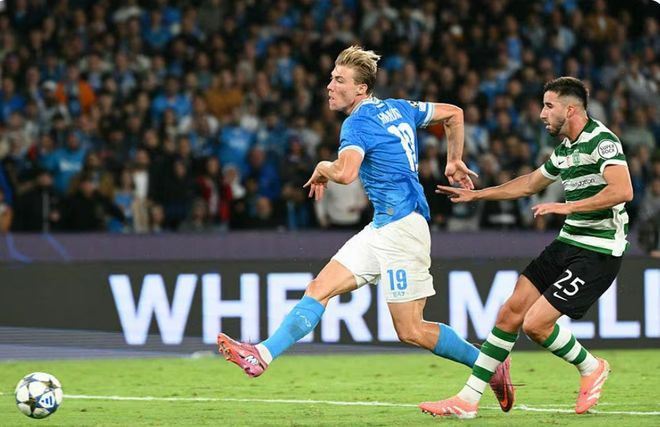 雷速体育10月02日讯 25-26赛季欧冠联赛阶段第二轮,意甲冠军那不勒斯坐镇主场2-1战胜葡超冠军葡萄牙体育,从而夺取本赛季欧冠首场胜利。那不勒斯能斩获胜利,丹麦前锋霍伊伦发挥了决定性作用,包办球队全部2粒入球。