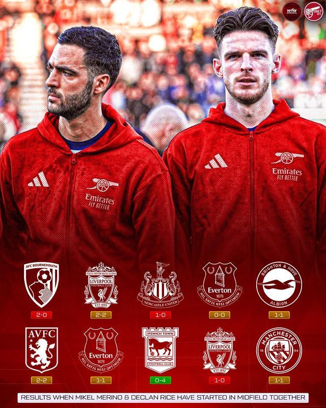 赛后根据统计,在梅里诺和赖斯一同在中场搭档首发的10场比赛中,阿森纳只赢下了其中的1场,剩余9场比赛他们6平3负,期间唯一的一场胜利发生在上赛季英超第34轮的比赛中,当时他们客场4-0击败了最终降级的伊普斯维奇。