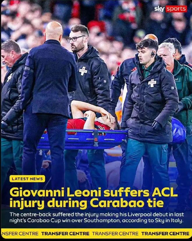 “莱奥尼在联赛杯首秀中表现出色、斯洛特对他十分满意,但他却不幸受伤。莱奥尼将努力争取在本赛季结束前回归。”