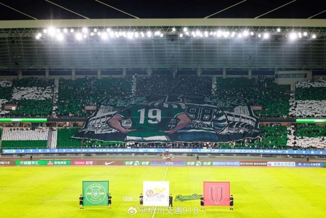 据杭州交通918报道,本次TIFO展示名为“择一队 忠一生”。画面中两人穿着号码为“19”、“98”的球衣,象征着浙江队的起点为1998年。这是本赛季主场第二次进行全东看台TIFO展示,本次TIFO面积达到了2400方。