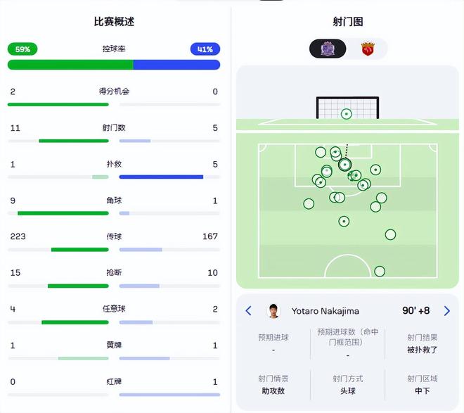 对方后场有空间,加布里埃尔自己带球杀向禁区,随后内切射门完成得分。穆斯卡特的先手安排,至少在面对广岛三箭进攻方向时,取得了很好的效果。